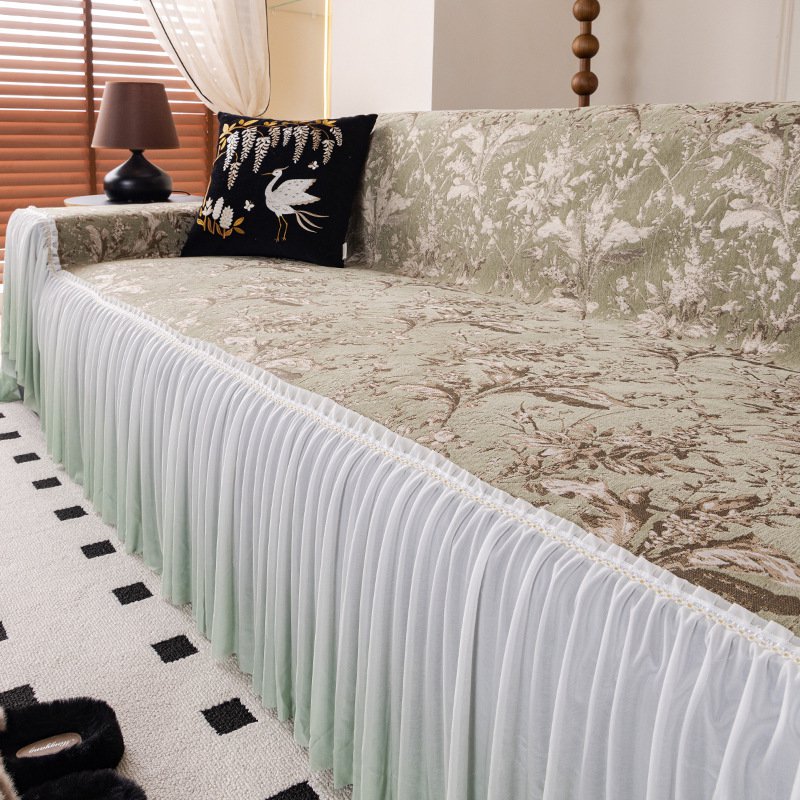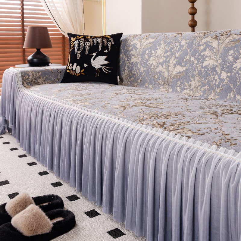 ผ้าคลุมโซฟากันลื่นผ้าชีนนีลพร้อมชายกระโปรง